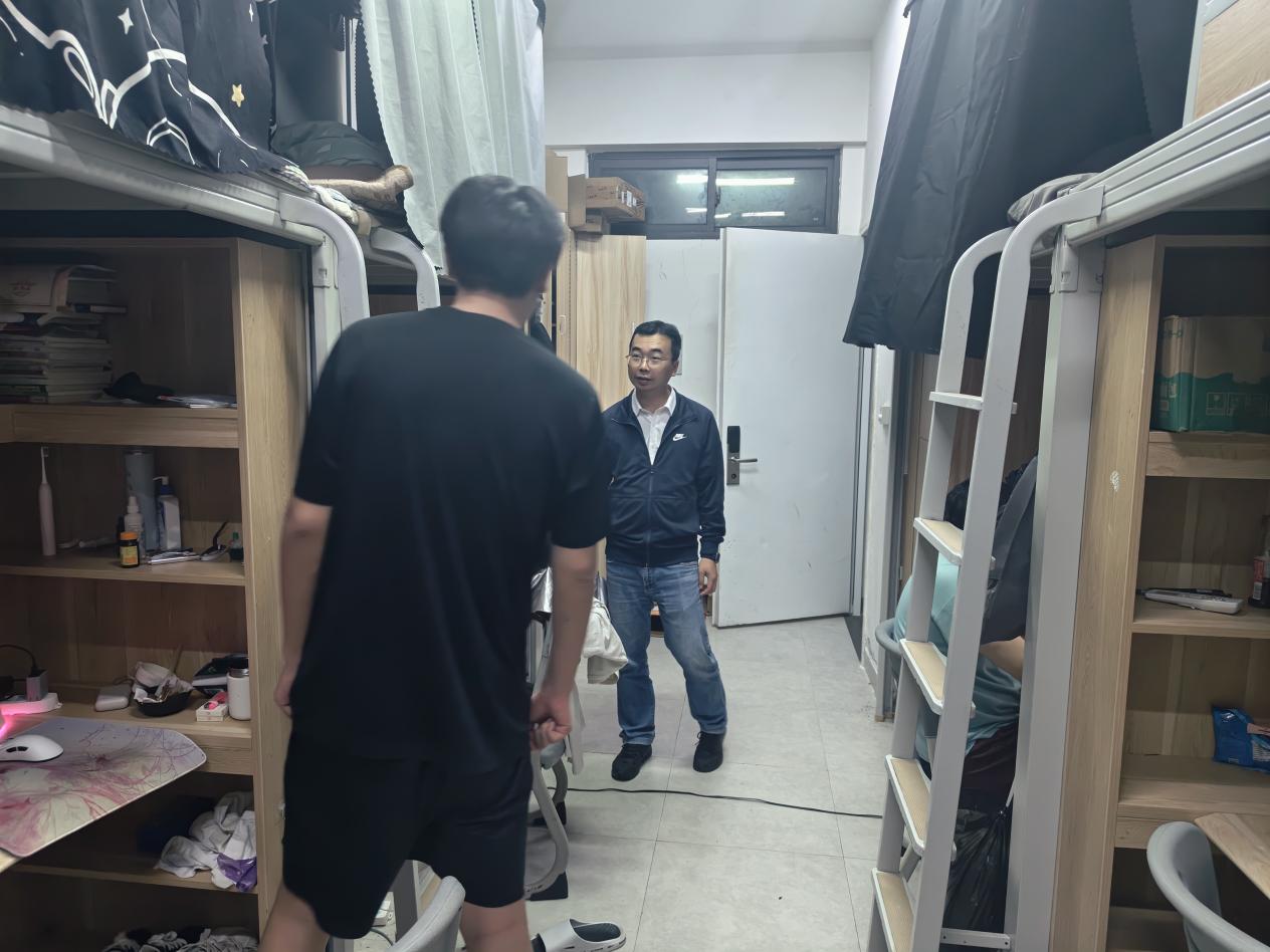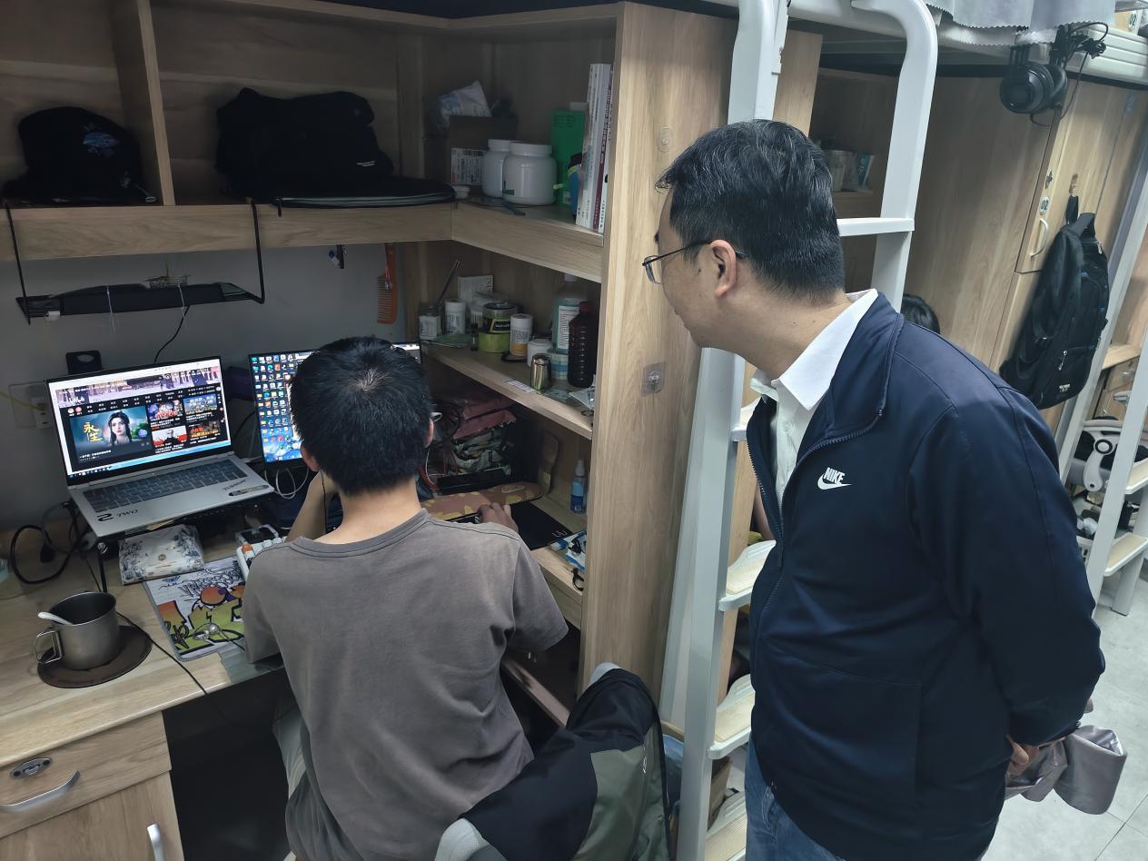 走访过程中,郑健反复叮嘱同学们要时刻绷紧安全这根“弦”,自觉定期检查宿舍内各类生活设施,细致排查潜在安全隐患,坚决杜绝“排插上床”等危险行为,严禁违规违禁物品进入宿舍,切实守护自身与他人的居住安全。同时,他与同学们促膝长谈、亲切交流,主动关切大家近期的生活近况与学习状态,逐一询问学生在学习生活中遇到的困难与需求,认真倾听同学们对系部建设、教学管理等方面的意见建议,一句句暖心的叮嘱、一声声真诚的问候,让同学们深切感受到了系部的关怀与温暖。此外,他还结合往届系部优秀毕业生的真实案例,为同学们答疑解惑,引导大家提前规划职业生涯,树立“凡事往前靠”的主动意识,尽早落实“两证一状”考取计划、启动专升本备考准备,鼓励大家脚踏实地、循序渐进,走好每一步,才能拓宽未来发展之路、走稳长远人生之路。