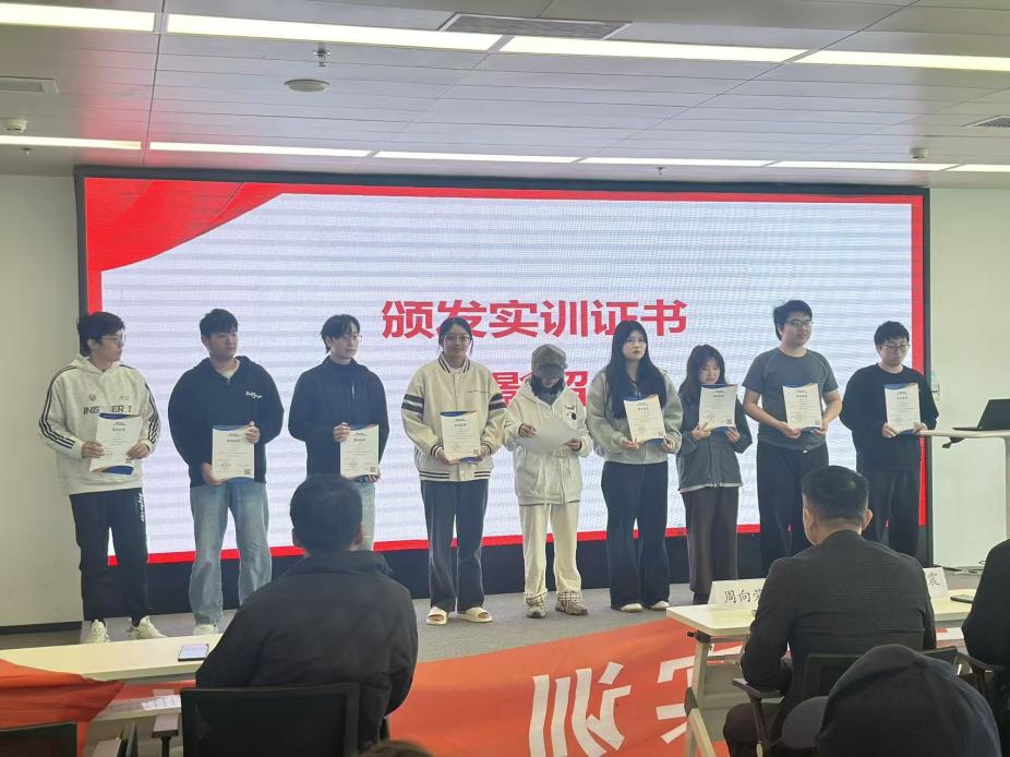 仪式最后,与会领导与企业代表为全体实训学员颁发实训证书。这一荣誉不仅是对同学们过去四个月辛勤付出的充分认可,更是对大家未来职业生涯的殷切期许。希望这段实训经历能为学子们筑牢职场技能基础,赋予其面对未来工作的充足底气与坚定信心,助力大家在职业道路上绽放更绚烂的光。