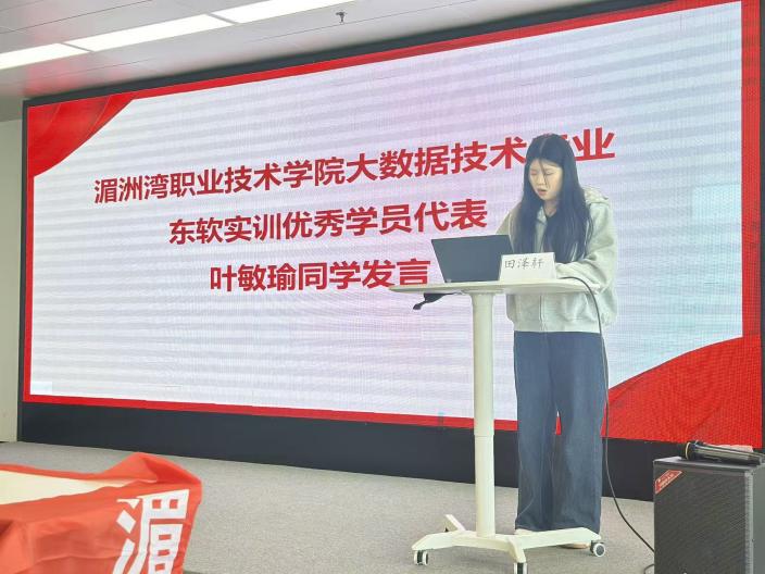 表彰结束后,大数据技术专业、动漫制作技术专业实训优秀学员代表依次登台发言。他们衷心感谢实训期间各位老师的悉心指导与同学们的互助同行,分享了从理论学习到实践操作的成长感悟,以及在技能提升、团队协作中的收获与体会,言语间满含对实训经历的珍视与对未来职业道路的期许。