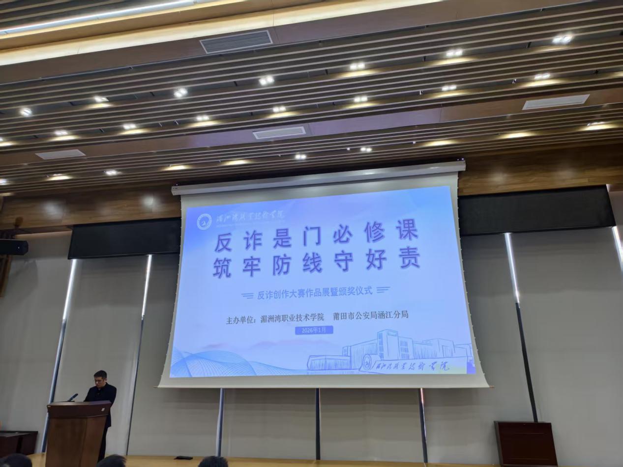 当前电信网络诈骗案件高发,校园已成为诈骗分子觊觎的重点区域,提升师生反诈意识与防范能力刻不容缓。为切实筑牢校园反诈安全防线,守护师生财产安全与校园和谐稳定,近日,信息工程系部分师生参加湄洲湾职业技术学院联合莆田市公安局涵江分局隆重举办“反诈是门必修课 筑牢防线守好责”反诈创作大赛作品展暨颁奖仪式。