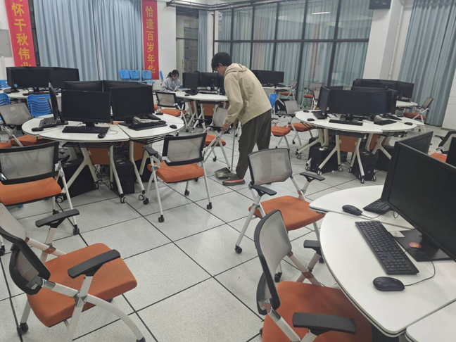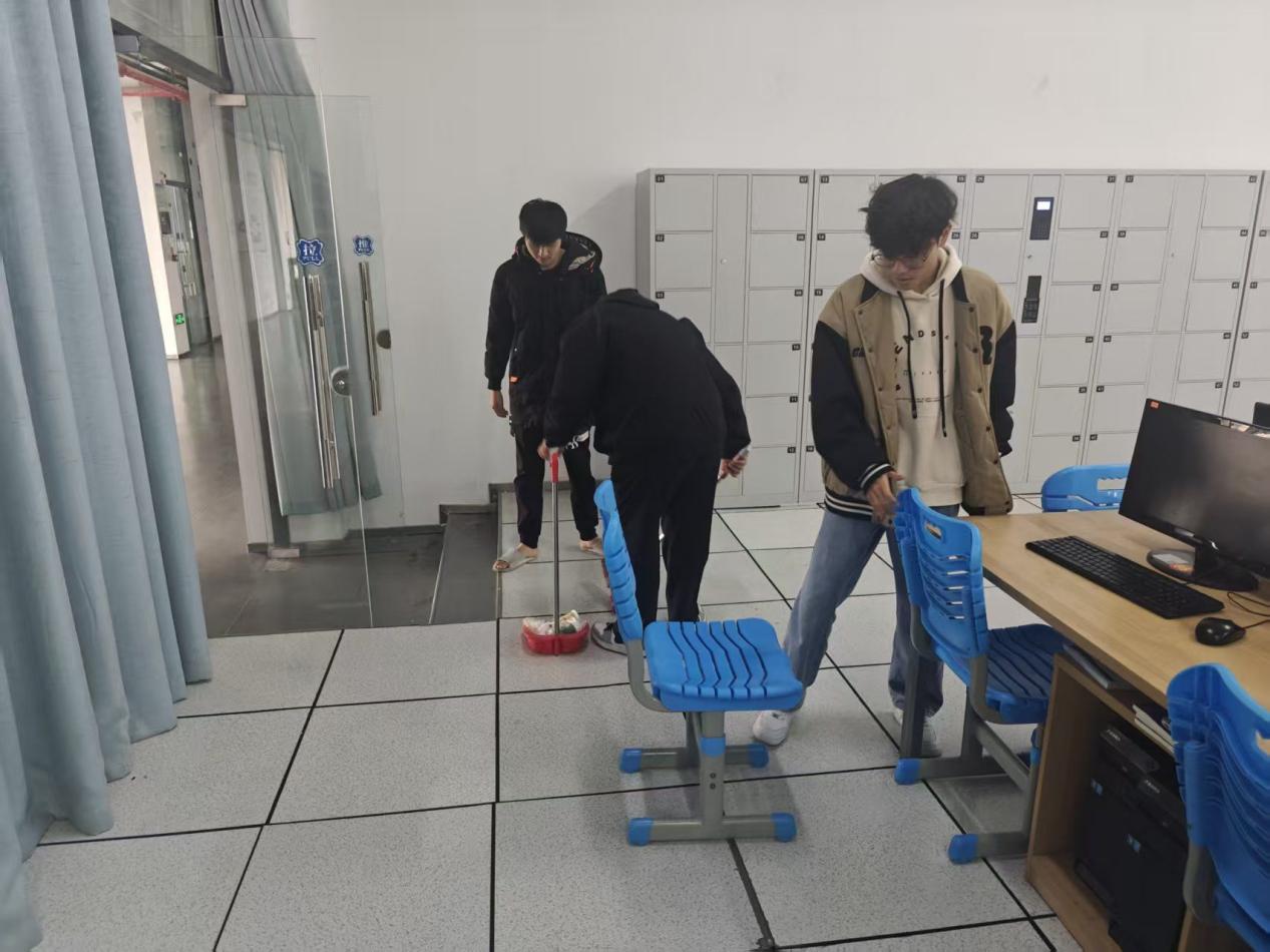 草坪上,大家弯腰细致捡拾塑料碎屑、落叶杂物,不放过任何卫生死角;实训室内,同学们擦拭桌椅、整理设备、清扫地面,让学习环境焕然一新。志愿者们不怕脏、不怕累,相互配合、互帮互助,脸上洋溢着青春的笑容,成为校园里一道靓丽的风景线。