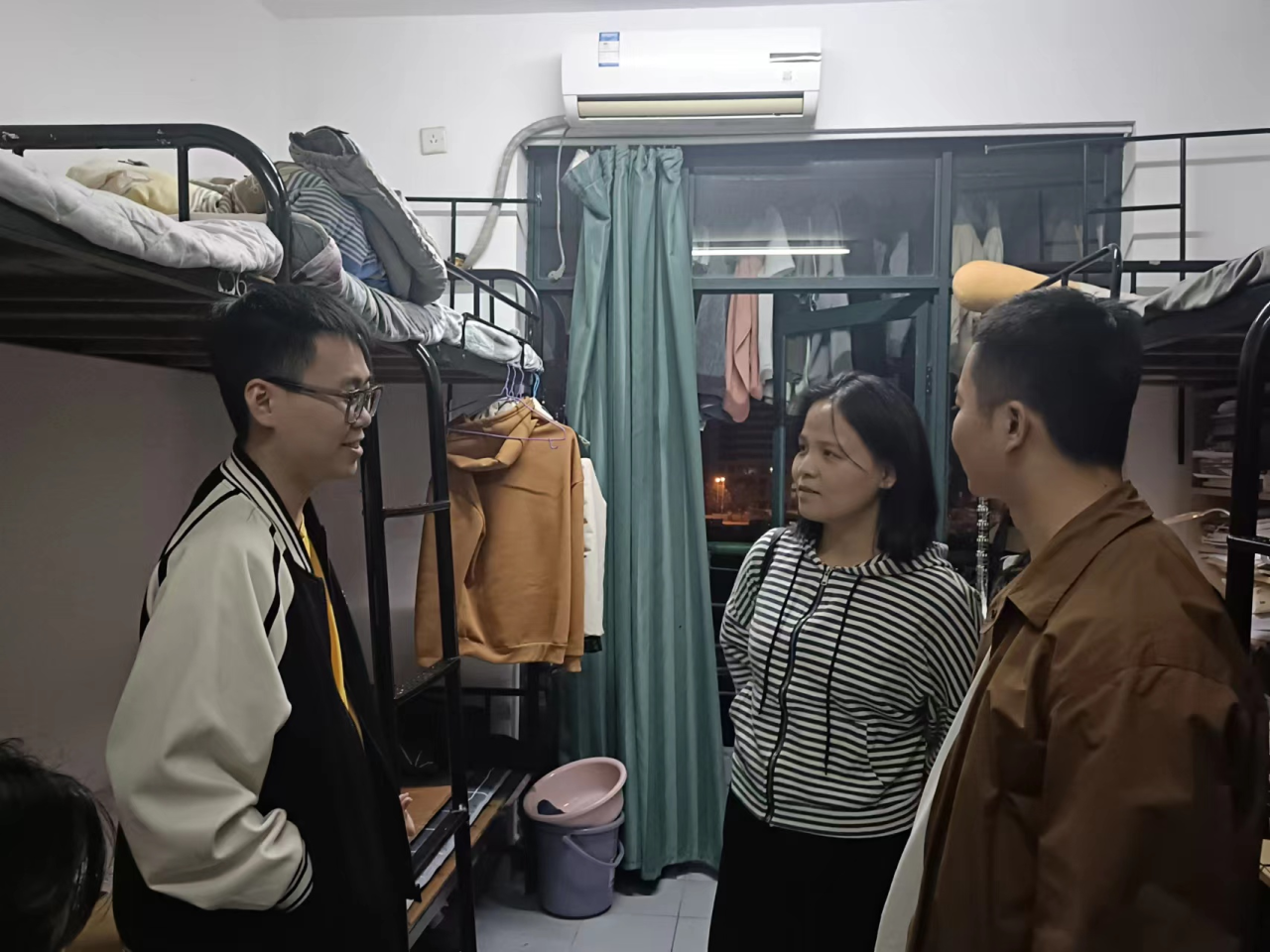 大数据专业主任吴婷婷和辅导员许枫魁在对学生学习问题的关注之余,也特别关注学生的身心健康。在宿舍走访中,他们与学生进行了温暖的谈心谈话,关切地询问因流感而生病的同学,提醒大家注意保暖、适量运动,强调了预防流感病毒的重要性。