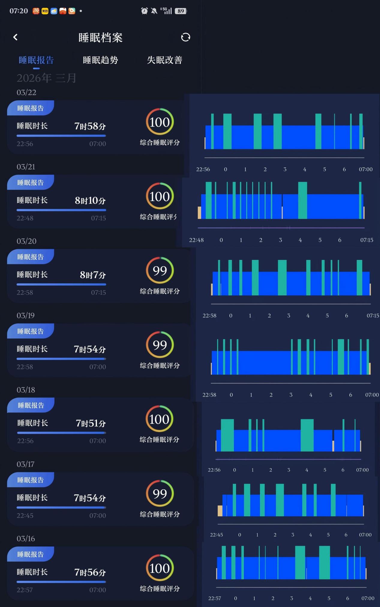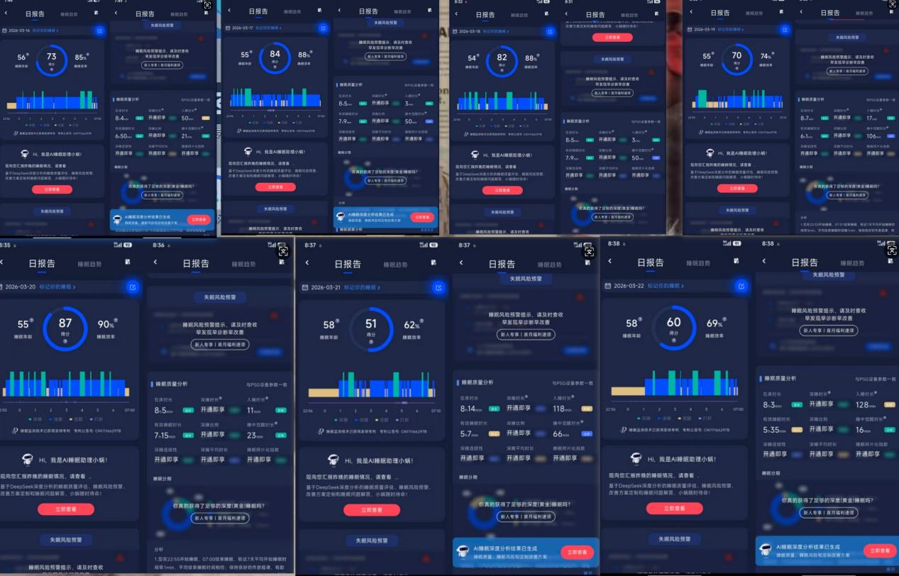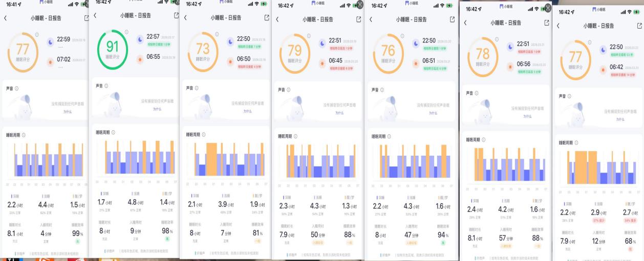 本次活动中,不少同学坚持每日打卡、认真记录睡眠数据,用真实截图见证作息蜕变。以下为部分同学的优质睡眠截图,清晰展现了规律作息带来的优质睡眠状态,为全体学子树立了健康作息榜样~
