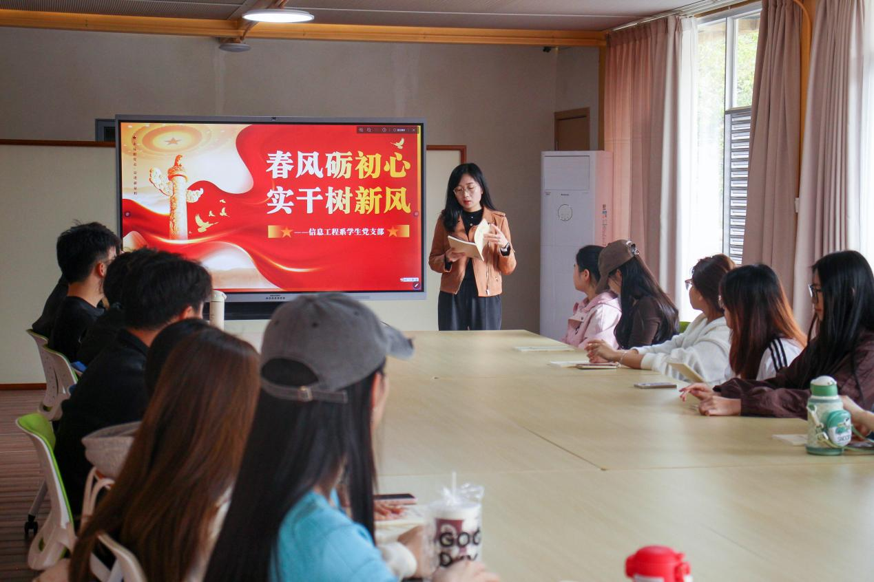 内容摘要: 春和景明,万物勃发。为学习贯彻全国两会精神,引导学生党员与入党积极分子以实干精神践行初心使命,近日,信息工程系学生党支部以“春风砺初心・实干树新风”为主题,在校园香山栈道、正念小屋等地开展了一场集理论学习、红色创作、环保实践于一体的特色党日活动,全体学生党员及入党积极分子参与其中。活动伊始,正念小屋内的理论学习环节为整场活动筑牢思想根基。与会师生党员和入党积极分子结合自身学习、工作实际积极展开学习和研讨,谈认识、谈体会,进一步明确了“实干为要、为民服务”的价值导向。定格初心:红韵剪纸绘初心,一刀一剪寄深情剪随心动,纸载初心。在剪纸创作环节,大家手持剪刀、红纸,精心勾勒党徽、五星、“青春向党”等